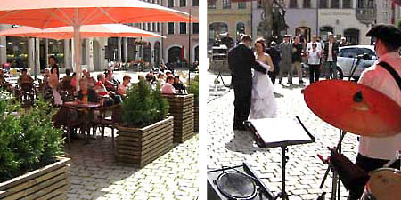 Alle Musiker freuten sich auf ihre Fans und weitere zahlreiche Besucher des Marktes und gingen gern auch auf individuelle Musikwünsche ein. Es wurde durch ein Brautpaar und seine Gäste sogar ein „Tanz auf dem Markt"; gewagt.