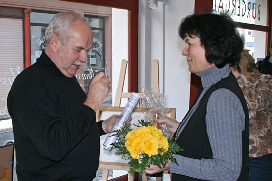 Volker Tauchert würdigte zur Eröffnung das Engagement von Hans-Jörg Waskowski für den Verein „Ja - für Gera e.V.” und für die Einrichtung der Bürgergalerie im Steinweg.