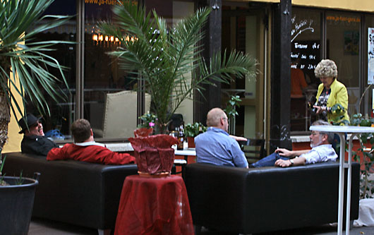 Die gemütliche Stimmung übertrug sich auch nach draußen vor den Bürger-Treff, wo man den Abend besonders in den Pausen des Auftritts unter Palmen genießen konnte.