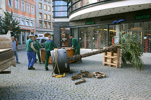 Die Palmen am „Piazza Gera” und „Klein Montmartre” wurden wieder aufgestellt