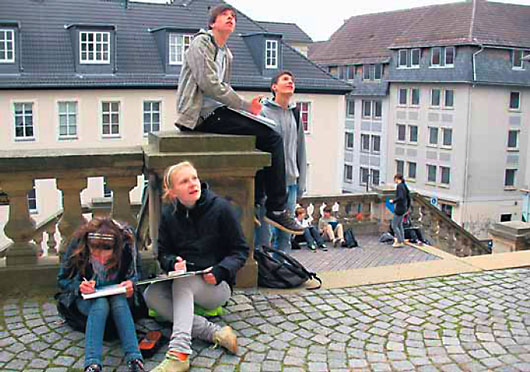 Achtklässler des Zabelgymnasiums konzentriert bei ihrer künstlerichen Arbeit