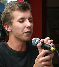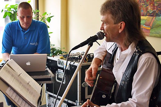 Am Samstag Vormittag unterhielt „Alabama Maik" das Publikum im „Bürger-Treff” und im Steinweg. Wie bei den meisten Veranstaltungen der Musikwochen von „Ja - für Gera e.V.”, stellte und betreute Ingolf Wunder die Technik.