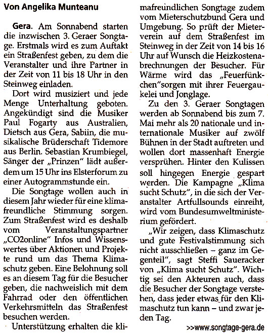 3. Geraer Songtage starten am Sonnabend und wollen klimafreundliche Stimmung sorgen