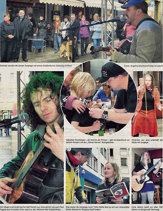 Bild links: Der Sänger und Liedermacher Ralf Dietsch aus Gera gehört wie auch Paul Fogarty aus Australien (Foto oben) zu den Akteuren des Straßenfestes.