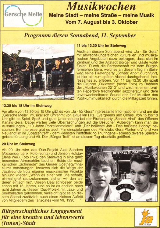 Musikwochen · Meine Stadt - meine Straße - meine Musik · Vom 7. August bis 3. Oktober 2010