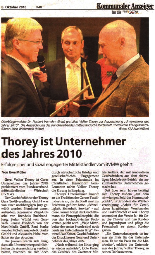 Volker Thorey ist Geras Unternehmer des Jahres 2010