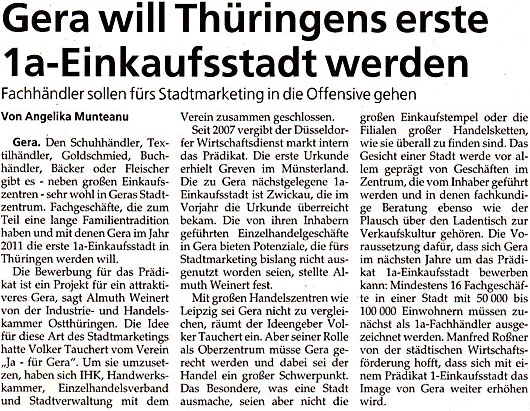 Gera will Thüringens erste 1a-Einkaufsstadt werden
