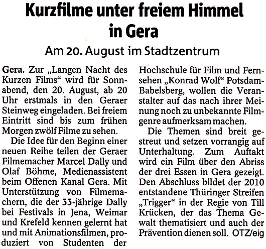 Kurzfilme unter freiem Himmel in Gera