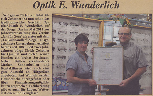 Gera ist „1a-Einkaufsstadt” · Prämierte Fachhändler garantieren höchste Qualität