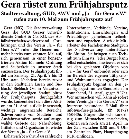 Gera rüstet zum Frühjahrsputz