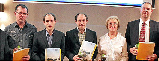 Karsten Janzon, Alexander und Felix Pradella, Heidi Kolb und Stephan Krause (von links) erhielten für Engagement ebenfalls eine Thüringer Ehrenamtscard. Foto: Patrick Weisheit