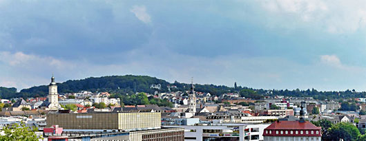Gera mit Nicolai-Kirche, KuK, Rathaus, Galeria Kaufhof, Elster Forum, Stadtmuseum.