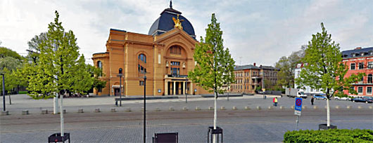 Ausgangspunkt des Tagungs-Stadtspaziergangs ist der Theatervorplatz mit Aposto und Großem Haus der Bühnen der Stadt Gera. Der Platz wird als einer der funktionierenden und für die Stadt werbenden Standorte ins Feld geführt.