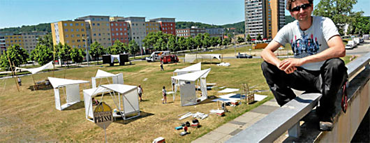 Auf dem Platz vor dem Kultur- und Kongresszentrum ist gestern der Startschuss für eine spannende Woche gegeben worden, die mit von Kurator Marcus Max Schreinergebündelten Aktionen die Brache mit Leben füllt. Stadtmöbel sind aufgebaut, es gibt einen Lesegarten, Fitnessprogramme, eine Eisdiele, Lichtinstallationen, Filmabend, Stadtgärtnern und eine Zitronenpresse. Also nichts wie hin und mitmachen.